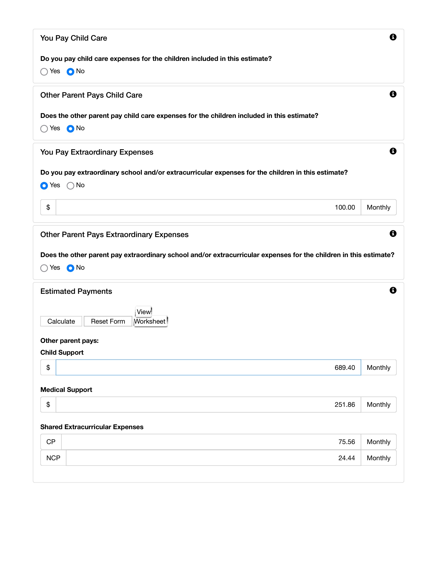 Child calculations with co parent living in home 6 months of the year